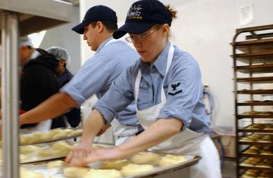 Keywords: bakers baking bread cooks food kitchen fresh flour dough oven military work labor job navy