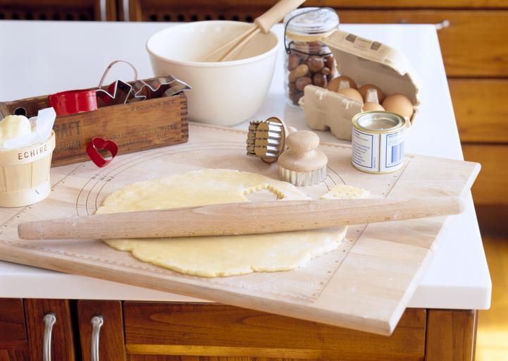 Keywords: baking cake cooking kitchen food table flour utensils eggs butter milk dough wood rustic culinary easter organic design sugar concept old retro space life wooden menu board pin still text rural home rolling