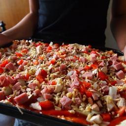 Keywords: baking pizza baking fresh pizza baking pan stick