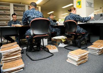 | Keywords: Balboa PSD Service Record Phase Out DVIDS304247.jpg en Personnel specialists from Personnel Support Detachment Balboa work together on the Navy-wide phase out of the Enlisted Field Service Records converting from paper files to electronic files The eight-member team work around the clock to reach their May 31 goal of phasing out all 4 200 Enlisted Field Service Records PSD Balboa takes care of all enlisted personnel service records for Naval Medical Center San Diego USNS Mercy Naval School of Health Sciences San Diego all outlying clinics assigned to NMCSD and the Fleet Industrial Supply Center The Navy deadline is Sept 30 PSD Balboa has already phased out 1 000 records since they started May 3 2010-07-28 Petty Officer 1st Class Anastasia Puscian https //www dvidshub net/image/304247 100728-N-+++++-003 2010-07-28 16 20 SAN DIEGO CA US PD-USGov-Military-Navy USNS Mercy T-AH-19 Images from DoD uploaded by Fæ |