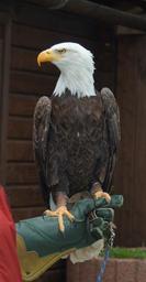 Keywords: bald eagle white tailed eagle bird of prey raptor bird animal griffin nature plumage birds adler birds of prey show bird's eye view train training glove