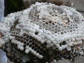 Keywords: Bald Faced Hornets Nest.jpg en The inside of a bald-faced hornet's nest after extermination from tree own photo Ellin Beltz 2012-08-16 Vespidae nests Dolichovespula maculata Nature of Ferndale California Photographs by Ellin Beltz