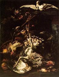 | Keywords: Baldassare de Caro - Still-Life with Turkey, Fruit and Flying Pigeon - WGA04274.jpg Artwork Creator Baldassare de Caro firsthalf other date century 18 Oil on canvas Institution Pinacoteca d'Errico Matera object history credit line Still-life accession number WGA link 4274 http //www wga hu/art/c/caro/stillif1 jpg http //www wga hu/html/c/caro/stillif1 html PD-old-100 painting still-life Italian 1701-1750 Baldassare de Caro Still-Life with Turkey Fruit and Flying Pigeon Pinacoteca d'Errico Matera Still-life paintings of dead birds 18th-century oil on canvas paintings in Italy Pigeons in art Turkeys in art Paintings of poultry 1701-1750 paintings 18th-century still life paintings in Italy WGA form painting WGA type still-life WGA School Italian WGA time period 1701-1750 Still life paintings with living birds |