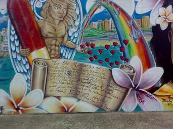 Keywords: Bali grafitti.jpg en Photograph taken in Coogee Bay of Bali Memorial Grafitti own From trip to Coogee Bay Deanrobson9 Graffiti of males