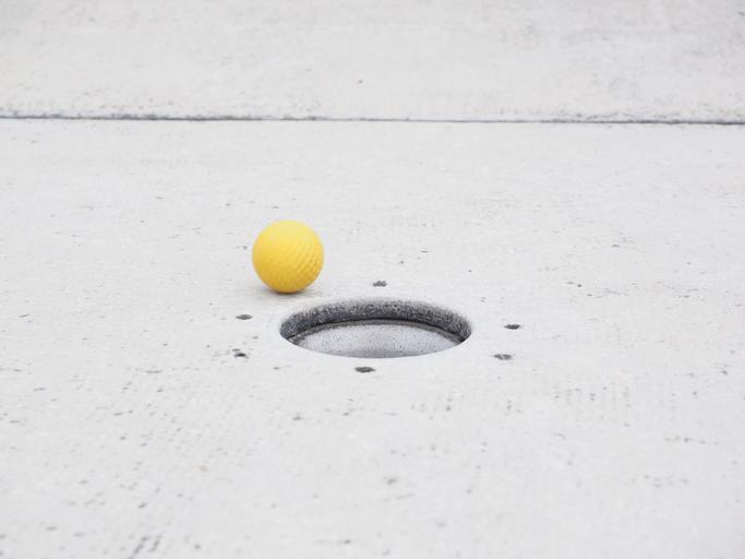 Keywords: ball mini golf ball hole putting target circle ball guide miniature golf minigolf plant ground golf skill game precision sport train minigolf ground obstacles eternit track putten yellow rubber ball
