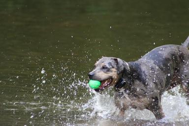 Keywords: ball run pet dog animal water canine domestic mammal young adorable outdoors doggy playing playful fur