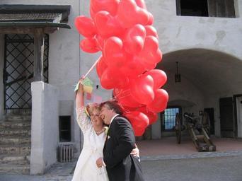 Keywords: balloon bride and groom wedding marriage marry castle celebration woman man pair before love romance wedding celebration
