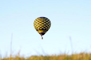 Keywords: balloon fly flying travel float hot air balloon trip lifting sky air yellow blue grid wind