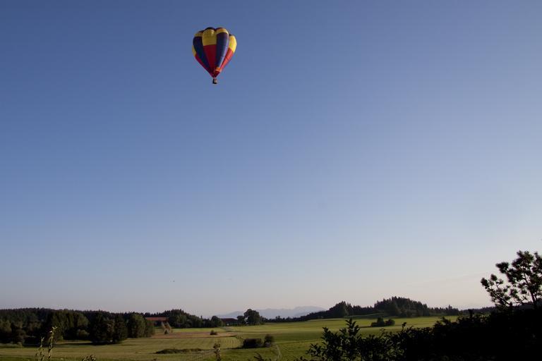 Keywords: balloon gas tight envelope gas filled filling gas air hot air balloon lifting gas helium hydrogen gas balloon landscape mountains upper bavaria abendstimmung blue colorful wide angle