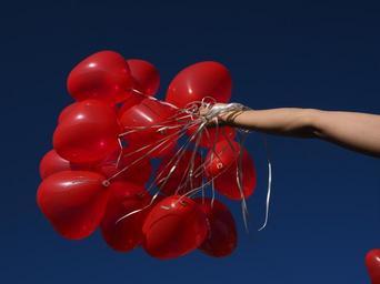 Keywords: balloons detention arm hand rise upgrade fly heart love romance romantic relationship red heart shaped wedding day wedding congratulations congratulation