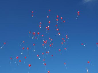 Keywords: balloons fly wedding congratulations congratulation rise upgrade heart love romance romantic relationship red heart shaped wedding day flap away entschweben