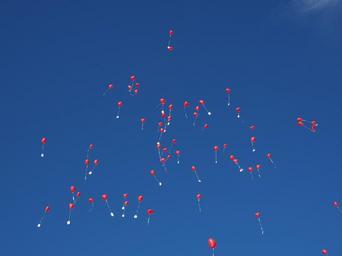Keywords: balloons fly wedding congratulations congratulation rise upgrade heart love romance romantic relationship red heart shaped wedding day flap away entschweben