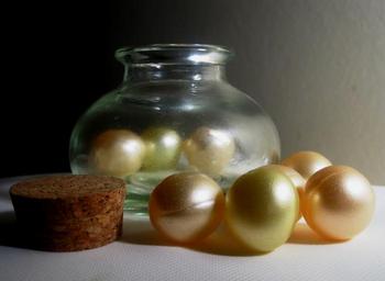 Keywords: balls gel fragrant pearly bottle small glass clear cork