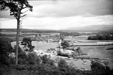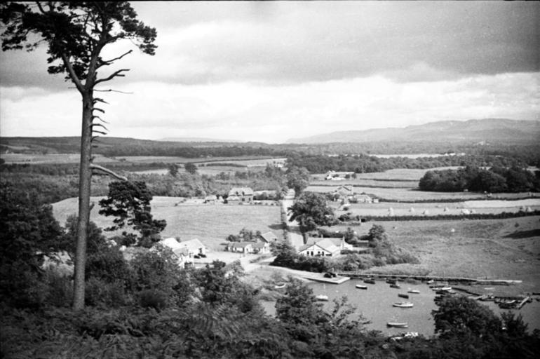 Keywords: View of Balmaha and Loch Lomond from hill overlooking village and Loch