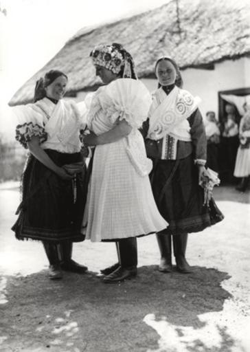 | Keywords: Balogh Rudolf Boldogi menyasszony 1930.jpg Artwork hu Boldogi menyasszony portréja mellette két koszorús lány áll háttérben nádfedeles parasztház 1930 gelatin silver print Size cm 140 180 Institution Hungarian Museum of Photography Kecskemét object history exhibition history credit line accession number 2004 10163 place of creation http //fotomuzeum hu/fotografiak/balogh_rudolf__boldogi_menyasszony Hungarian Museum of Photography Custom license marker 2015 01 03 PD-old-70 Uploaded with UploadWizard Photographs by Rudolf Balogh 1930 photographs 1930 works in Hungary Black and white group photographs of women Boldog Wedding ceremonies in Hungary 1930 weddings Brides of Hungary Bridesmaids Three women 1930s wedding dresses |