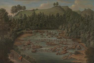 Keywords: balthazar nebot painting oil on canvas artistic nature outside sky clouds landscape mountains forest trees river rocks rocky country countryside