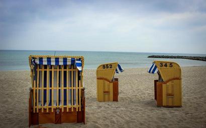 Keywords: baltic sea beach chair holiday beach travel sky clouds