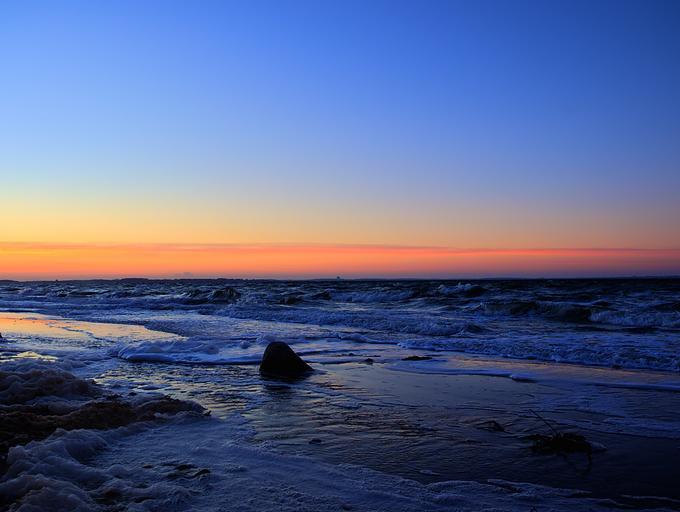 Keywords: baltic sea sea beach coast water cold uncomfortable sand beach sunset groß schwansee