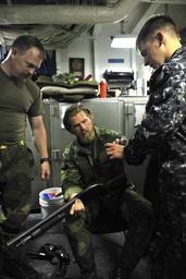 | Keywords: BALTOPS 2015 150613-N-PI704-003.jpg en BALTIC SEA Gunner's Mate Seaman Ryan Archer originally from Topeka Kan instructs two Swedish marines about the rounds of an M500 shotgun in the ship's armory June 13 2015 San Antonio home ported in Norfolk Va is conducting Baltic Operations in the 6th Fleet area of operations to promote flexibility and interoperability between allied countries in the North Atlantic Treaty Organization 2015-06-13 June 13 2015 https //www dvidshub net/image/1998183 150613-N-PI704-003 2015-06-13 19 16 USS SAN ANTONIO BALTIC SEA PD-USGov-Military-Navy USS San Antonio LPD-17 Images from DoD uploaded by Fæ BALTOPS 2015 Mossberg 500 |