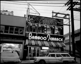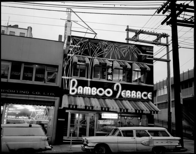 | Keywords: blackandwhite monochrome outdoor photo border architecture black and white PHOTO NUMBER: 2000A DESCRIPTION: Bamboo Terrace Chinese restaurant, 155 East Pender Street, Vancouver, BC PHOTOGRAPHER: Province Newspaper DATE: 1961 SUBJECTS: Restaurants, Automobiles, Neon signs More information on our historical photograph collection: www.vpl.ca/historicalphotos PHOTO NUMBER: 2000A DESCRIPTION: Bamboo Terrace Chinese restaurant, 155 East Pender Street, Vancouver, BC PHOTOGRAPHER: Province Newspaper DATE: 1961 SUBJECTS: Restaurants, Automobiles, Neon signs More information on our historical photograph collection: www.vpl.ca/historicalphotos |