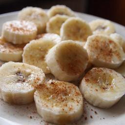 Keywords: banana cutting pieces cinnamon board