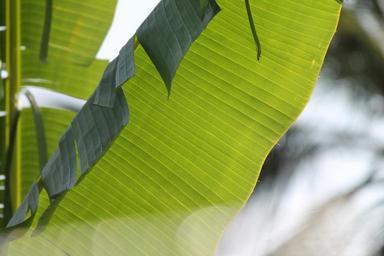 Keywords: banana leaves plants trees long large leafy branches stems foliage flora tropical vegetation plantations crops nature bright colorful gardens