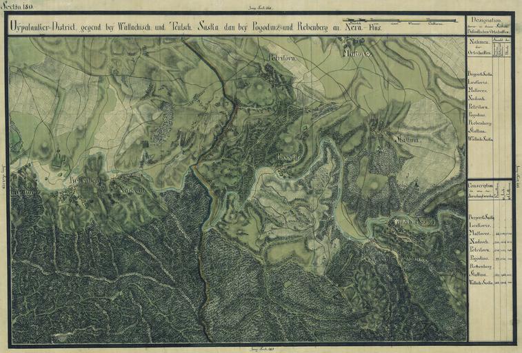 | Keywords: Banat Josephinische Landaufnahme pg180.jpg wikitable style margin 1em auto 1em auto width 80 Name shown on the map<br>Nume din hartă Administrative unit<br>Unitate administrativă Romanian name<br>Numele românesc Hungarian name<br>Numele unguresc German name<br>Numele german Serbian name<br>Numele sârbesc Country today<br>Ţara de astăzi - Bergwerk Saska Krassó megye Sasca Montană Szászkabánya Német-Szászka Deutsch-Saszka Bergwerk-Saszka Saska in Banater Bergland Románia - Leskoviz Oláh-illír bánsági ezred Román-illír bánsági kerület Lescoviţa Néramogyorós Leskovica Leskowitz Лесковица Románia - Makovez Krassó megye Macovişte Mákosfalva Makovistye Románia - Nadosch Oláh-illír bánsági ezred Román-illír bánsági kerület Naidăş Néranádas Nadasch Општина ајдаш Románia - Petrilova Krassó megye Petrilova Petrilova Románia - Pogodinz Krassó megye Bogodinţ Bogorfalva Bogodinc Románia - Rebenberg Oláh-illír bánsági ezred Román-illír bánsági kerület Kaluđerovo Szõllõshegy Rebenberg Калуђе ово Kaluderovo Románia - Slattina Oláh-illír bánsági ezred Román-illír bánsági kerület Zlatiţa Néraaranyos Goldmark Златица Zlatica Románia - Wallachisch Saska Krassó megye Sasca Română Szászka Oláhszászka Románszászka Wallachisch-Saszka Romania - Banatul în hărţile iozefine 1769-72 Josephinische Landaufnahme pg180 de Das Banat in Josephinische Landesaufnahme 1769-72 Josephinische Landaufnahme pg180 en The Banat region in the cadastral maps Josephinische Landesaufnahme 1769-72 Josephinische Landaufnahme pg180 Österreichisches Staatsarchiv Kriegsarchiv Historische Militärkarte der österreichisch-ungarischen Monarchie 1769-72 PD-old-100 Clickable map of the Banat region BanatJosephinischeLandaufnahme 1769-72 Josephinische Landaufnahme |