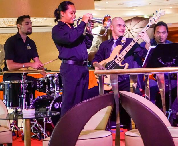 Keywords: band people person entertainment music group concert fun stage club performance event concert stage trumpet musical instruments show