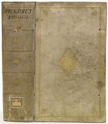 | Keywords: Band van blank perkament - Prijsband (zonder wapenstempel) Woerden-KONB12-1775G114.jpeg accession number Shelfmark 1775 G 114 credit line 1773; nl Inhoud Aug Phaedrus Libertus Fabularum Aesopiarum libri V Cum Commentariis Marq Gudii e a Curante Petro Burmanno Ed tertia emendatior Lugduni Batavorum Apud Samuelem Luchtmans et Filium 1745 2 vol in een band 8vo mm 212 124 50 exhibition history Institution Koninklijke Bibliotheek Blank perkament met goud bestempeld; resten van twee paar sluitlinten alternerend mat kobalt en vaal wit This object is part of https //www kb nl/en/resources-research-guides/kb-collections/bookbindings-and-paper-history/bookbindings the collection of bookbindings of the Koninklijke Bibliotheek the national library of the Netherlands object history object type Book binding PD-old-70-1923 place of creation The Netherlands Utrecht place of discovery Source page at the http //resolver kb nl/resolve urn urn gvn KONB12 1775G114 Geheugen van Nederland / Memory of the Netherlands website Koninklijke Bibliotheek Band van blank perkament - Prijsband zonder wapenstempel Woerden Uploaded with GWToolset Band van blank perkament - Prijsband zonder wapenstempel Woerden-KONB12 1775G114 http //resolver kb nl/resolve urn urn gvn KONB12 1775G114 size large Bookbindings from Koninklijke Bibliotheek Gilded books |