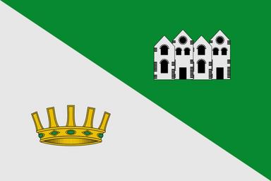 | Keywords: Bandera de Villanueva de Viver.svg es Bandera de proporciones 2 3 Partida por mitad en bajo A la primera mitad junto al asta de plata una corona radial de su color A la segunda mitad al vuelo de sinople un pueblo de plata aclarado y mazonado de sable https //www docv gva es/portal/portal/2002/08/23/pdf/doc/2002_9241 pdf DOGV núm 4320 de 23 08 2002 2012-01-25 own VaroPPO cc-zero Villanueva de Viver Flags of municipalities of the province of Castellón | ||||