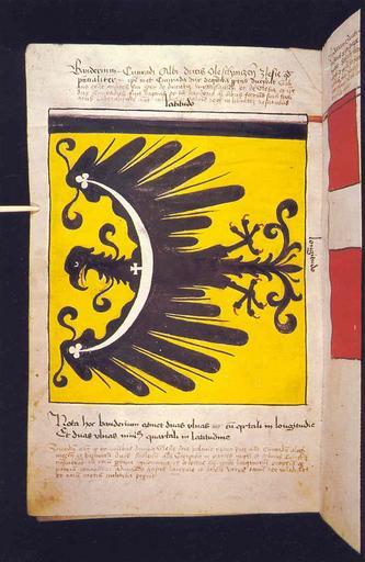 | Keywords: Banderia Prutenorum 4v.jpg la Banderium Cunradi Albi ducis Oleschniczensis Zlesie quod presencialiter ipsemet Cunradus dux de gentibus propriis ducebat; sub quo erant milites sui proprii de ducatu Wratislauiensi et de Slesia Et ipse dux Cunradus fuit captus et tam banderio quam omnibus fortunis suis spoliatus liberalitate autem Wladislai Polonie regis in libertatem restitutus Konrada BiaÅ‚ego ksiÄ™cia oleÅ›nickiego ze ÅšlÄ…ska pod którÄ… stanÄ…Å‚ osobiÅ›cie sam książę Konrad wraz ze swoimi ludźmi Byli wiÄ™c razem z nim jego wÅ‚aÅ›ni rycerze z ksiÄ™stwa wrocÅ‚awskiego i ze ÅšlÄ…ska Sam książę Konrad zostaÅ‚ pojmany i pozbawiony tak chorÄ…gwi jak i caÅ‚ego swojego mienia Wypuszczony zostaÅ‚ na wolność dopiero za wstawiennictwem króla WÅ‚adysÅ‚awa Należy mieć Å›wiadomość że spoÅ›ród wszystkich Å›lÄ…skich czy polskich książąt żaden inny jak tylko ten książę Konrad oleÅ›nicki i Kazimierz książę sÅ‚upski inaczej szczeciÅ„ski nie przeszedÅ‚ na stronÄ™ Krzyżaków zresztÄ… z wiecznÄ… dla siebie haÅ„bÄ… i wstydem bo przecież starali siÄ™ rozszarpać i zniszczyć wÅ‚asnÄ… mowÄ™ i ojczyznÄ™ wspierajÄ…c wrogów Król WÅ‚adysÅ‚aw przebaczyÅ‚ jednak obu oraz ich wziÄ™tym do niewoli rycerzom <br/>Ta chorÄ…giew ma dÅ‚ugość dwóch Å‚okci i ćwierć ok 140 cm a szerokość dwóch Å‚okci bez ćwierci ok 110 cm en Banner of Konrad VII the White duke of OleÅ›nica “ fighting knights from Duchy of WrocÅ‚aw Banderia Prutenorum Fol 4v http //www laborunion lt/memorandum/ru/modules/banderia/primus htm Ekdahl S Die Banderia Prutenorum des Jan Dlugosz - eine Quelle zur Schlacht bei Tannenberg 1410 Göttingen 1976 Jan DÅ‚ugosz StanisÅ‚aw Durink 1448 File Banderia Prutenorum Folio 4v jpg Cunradus Albus 1448 Banderia Prutenorum png PD-old-100 Banderia Prutenorum Flags of the House of Piast Conrad VII of Olésnica |