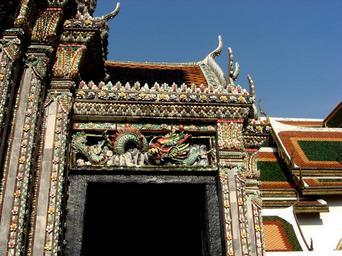 Keywords: bangkok thailand royal palace building structure landmark historical architecture ornate decorative sky clouds outside
