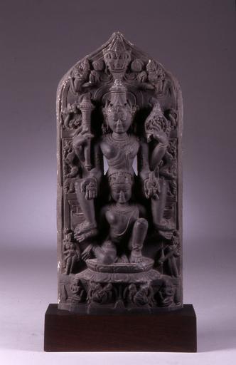 | Keywords: Bangladeshi - Vishnu Riding Garuda - Walters 25242.jpg conj or Bangladesh As the preserver of the universe and the cosmic order Vishnu must occasionally awaken from his serpent couch and inspect his realm The he does by riding his Garuda mount Thus in icons that are characterized in Sanskrit as garudasanamurti Vishnu is seen astride his mount who is more man than a bird in this stele Only the strong beak-like nose and the wings announce his avian nature Garuda kneels on a lotus flower with stalk and foliage to carry his master whose feet he supports with his hands Crowned and bejeweled Vishnu has four arms that carry the club the wheel and the conch shell The extended right hand has a few gems attached to the palm century 11 gray schist H without stand 25 9/16 x W 11 x D 3 in 65 x 28 x 7 6 cm accession number 25 242 39194 John and Berthe Ford Baltimore date and mode of acquisition unknown Walters Art Museum John Berthe Ford 2002 Desire and Devotion Art from India Nepal and Tibet in the John and Berthe Ford Collection The Walters Art Museum Baltimore; Birmingham Museum of Art Birmingham; Santa Barbara Museum of Art Santa Barbara; Albuquerque Museum Albuquerque 2001-2003 Vishnu Hinduism's Blue-Skinned Savior Frist Center for the Visual Arts Nashville; Brooklyn Museum Brooklyn 2011 place of origin Bangladesh Walters Art Museum license Hindu art in the Walters Art Museum Art of Bangladesh Media contributed by the Walters Art Museum needs category review Vishnu in sculpture Vishnu rides Garuda |