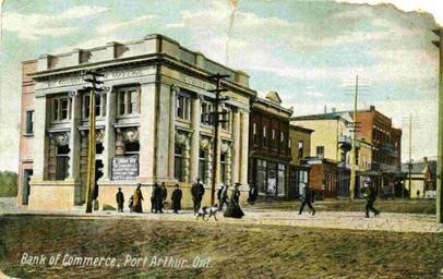 | Keywords: postcard port arthur portarthur cumberland street cumberlandstreet banks canadian imperial bank of commerce canadianimperialbankofcommerce businesses cibc thunder bay thunderbay arthur street arthurstreet red river road redriverroad darling & pearson darlingpearson beaux arts beauxarts architecture ontario canada history outdoor building Date: 1910 Description: After the Post Office approved the mailing of illustrated postcards in 1897, many hand-coloured images of the city were produced, purchased, and mailed to friends and loved ones. This particular postcard depicts the Canadian Imperial Bank of Commerce in Port Arthur (located at the time at the corner of South Cumberland Street and what was then Arthur Street). The building was still relatively new in 1910 when the original photograph for this postcard was taken. Accession No.: 983.1.58 Date: 1910 Description: After the Post Office approved the mailing of illustrated postcards in 1897, many hand-coloured images of the city were produced, purchased, and mailed to friends and loved ones. This particular postcard depicts the Canadian Imperial Bank of Commerce in Port Arthur (located at the time at the corner of South Cumberland Street and what was then Arthur Street). The building was still relatively new in 1910 when the original photograph for this postcard was taken. Accession No.: 983.1.58 |