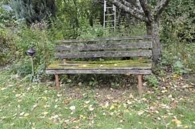 Keywords: bank garden nature moss garden bench rest still life bench forest empty