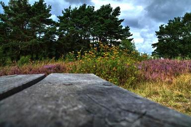 Keywords: bank landscape trees sky clouds nature meadow hiking rest outlook green mood idyll wood