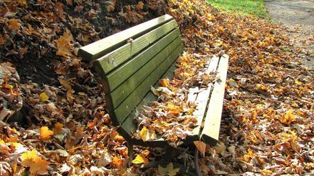 Keywords: bank leaves autumn alone loneliness blank park bench letting go