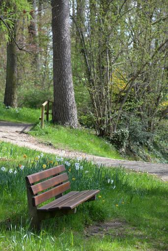 Keywords: bank park bench garden garden bench rest recovery forest seat sit out trees resting place forest path idyllic park