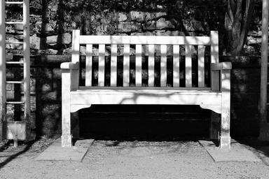 Keywords: bank park park bench wood break seating furniture sun early summer black and white