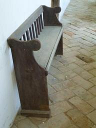 Keywords: bank rest bench wood seat resting place silent break recover click recovery hungary bricks brown