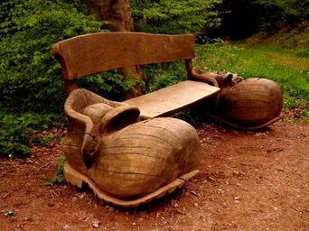 Keywords: bank rest sit seat bench resting place hike shoe shoes forest recovery relax break