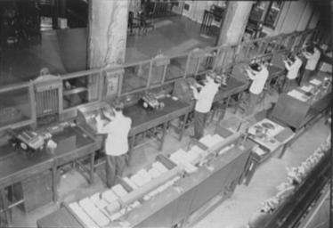 | Keywords: Bank tellers - 01.png en Bowery Savings Bank 34th St and 5th Ave New York City Tellers at machines Rights Advisory No known restrictions on publication Reproduction Number LC-G612-T01-39059 b w film dup neg Call Number LC-G612- 39059 <P P> P P 1941 http //www loc gov/item/gsc1994016314/PP/ Gottscho-Schleisner Inc photographer and National Cash Register Co client other versions PD-USGov Uploaded with UploadWizard Interiors of bank buildings in the United States Files by User Anna Frodesiak |