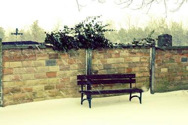 Keywords: bank wall stones cemetery cross bench break rest relax sit city wall click benches brick wall