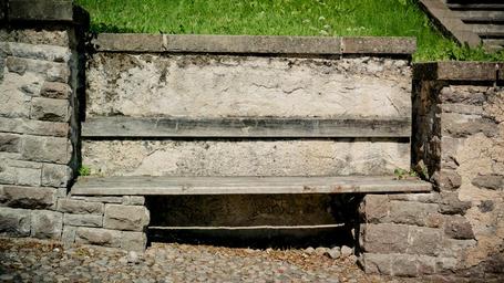 Keywords: bank wall wooden bench bricked bench break sit rest click wood seat stone wall