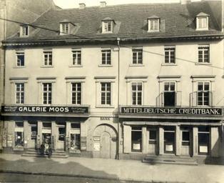 | Keywords: Bankhaus Seeligmann StA KA 8 PBS XIVe 104.jpg en Alfred Seeligmann's bank in Karlsruhe Kaiserstrasse 96 in 1916 when it was taken over by Mitteldeutsche Kreditbank Posters in the shop windows say Draw War Bonds now The lefthand side of the building had been let to the Moos family renowned art dealers of Karlsruhe Both Seeligmann and Moos were aryanized by the Nazis i e robbed and driven out of the country Some members of their families were murdered in the Shoah Stadtarchiv Karlsruhe Author 1916 PD-old Aryanization Banks in Karlsruhe Kaiserstraße Karlsruhe History of Karlsruhe |
