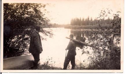 | Keywords: athabasca alberta oil exploration oilexploration photo border serene outdoor Dr. Karl Clark and guide Romeo Eymundson (son of Charles) on the back of the Athabasca River during one of Clark's oil expeditions, 1920s. From the Charles Eymundson fonds, PR2012.0927/31. Dr. Karl Clark and guide Romeo Eymundson (son of Charles) on the back of the Athabasca River during one of Clark's oil expeditions, 1920s. From the Charles Eymundson fonds, PR2012.0927/31. | ||||