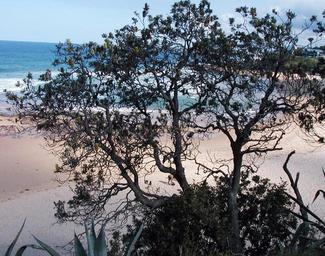 Keywords: Banksia integrifolia Austinmer.jpg Banksia integrifolia integrifolia gnarled tree on exposed headland Austinmer Own 2005 Cas Liber Banksia integrifolia