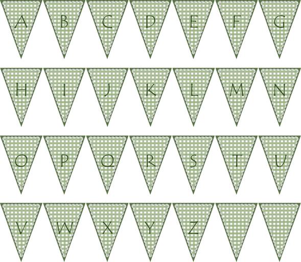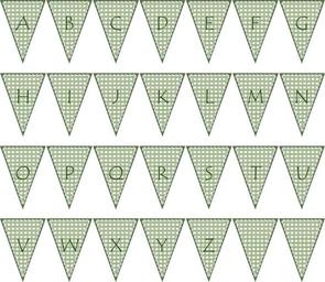 Keywords: banner bunting gingham flag check green mint alphabet letter triangle party white fun summer spring holiday happy cross stitch thread material fabric embroidery