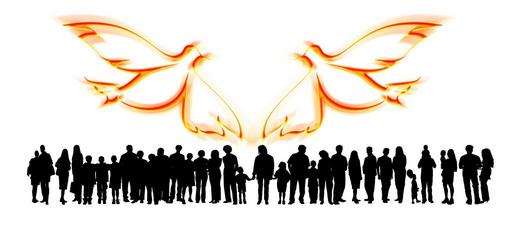 Keywords: banner header human dove peace dove harmony silhouettes silhouette world peace world peace day group personal man woman children