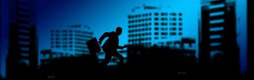 Keywords: banner header man silhouette businessman briefcase person run rings circle shadow stress rushed hurry race time skyscraper big city city office office building houses wohnsilo
